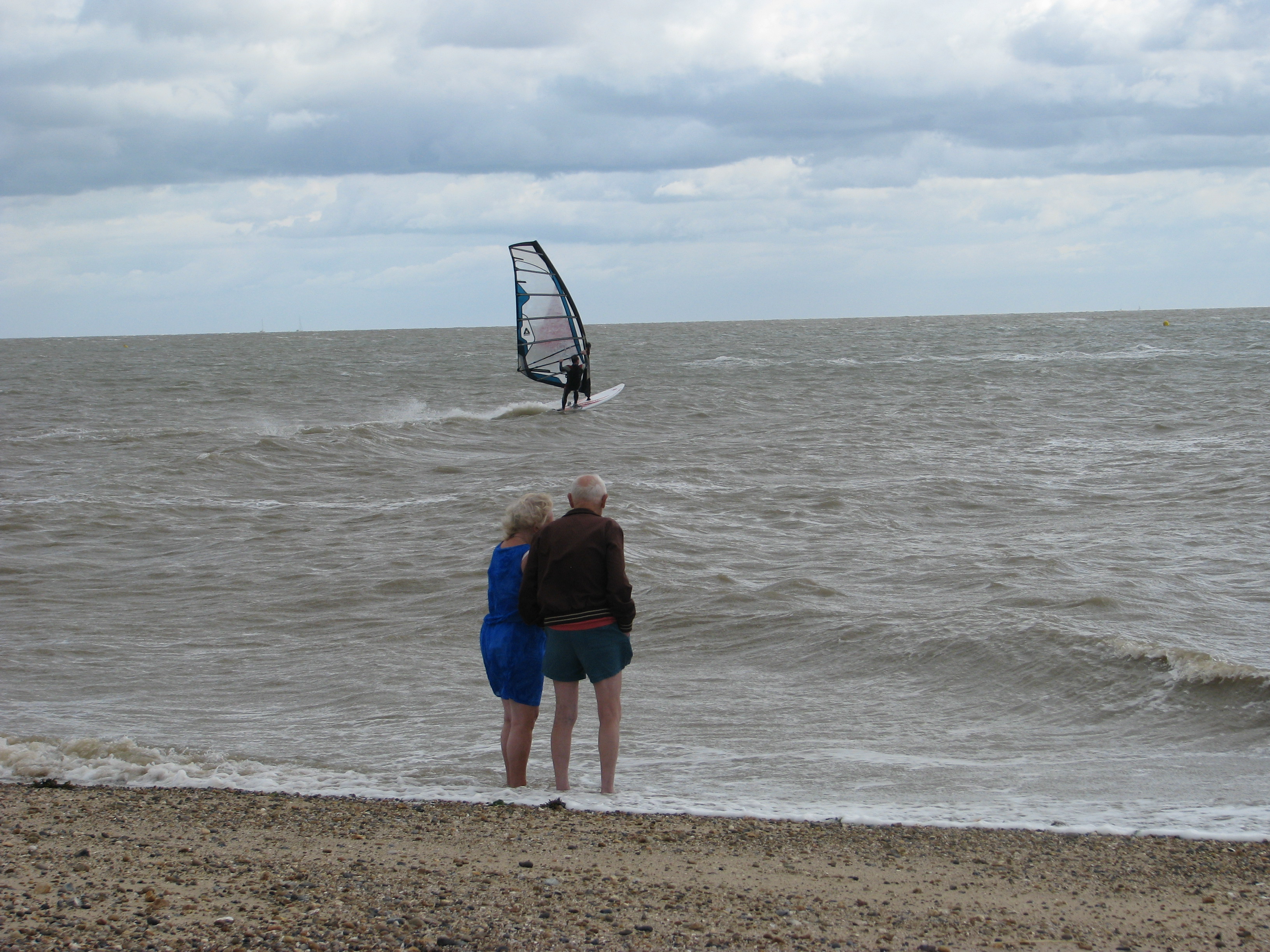 We had to leave after a couple of hours as the great British weather got the last laugh and it poured with rain! Just before we left I managed to take a cheeky photo of an elderly couple who had gingerly picked their way across the pebbles to have a paddle in the sea. They had bare legs and feet and held hands all the way down the beach 🙂