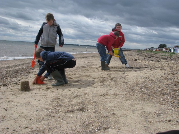 The boys were split into pairs and given the buckets & spades. We hunkered down on a picnic blanket and supped our coffee to keep warm!