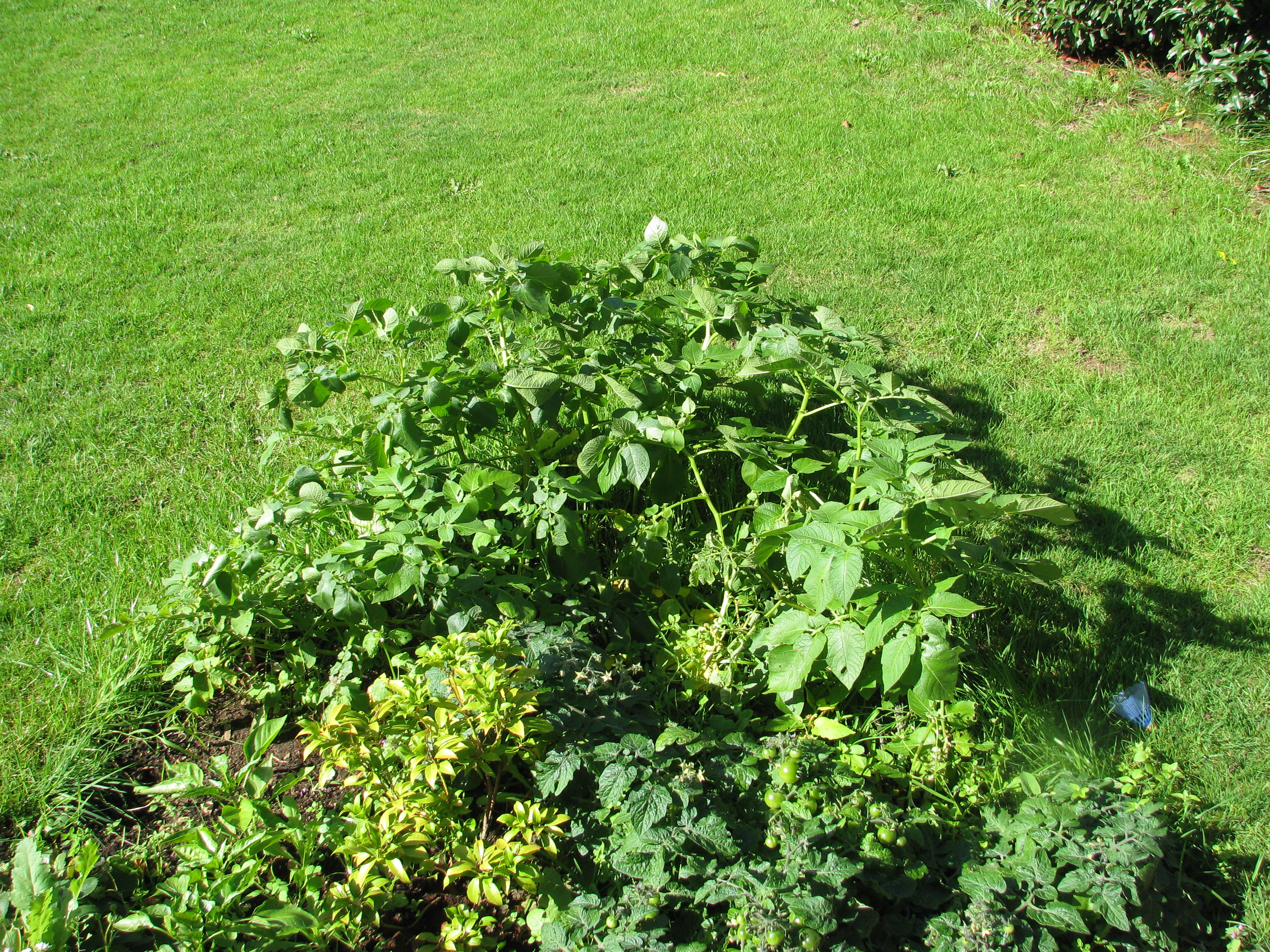I’m referring to the potato plants if you can distinguish them in that sea of green – they’ve had flowers which got blown away in the mad wind and rain the other day.