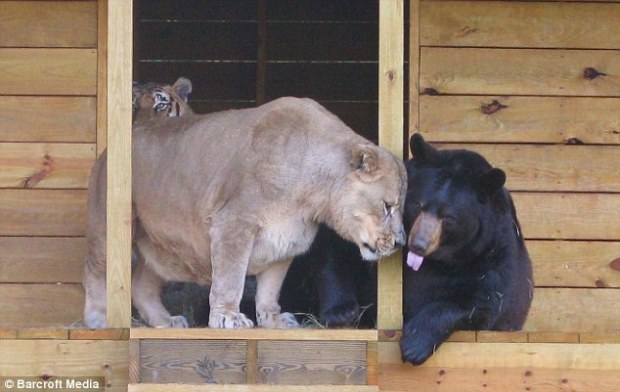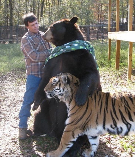 ‘It is wonderful and magical to see a giant American Black Bear put his arm around a Bengal and then to see the tiger nuzzle up to the bear like a domestic cat.