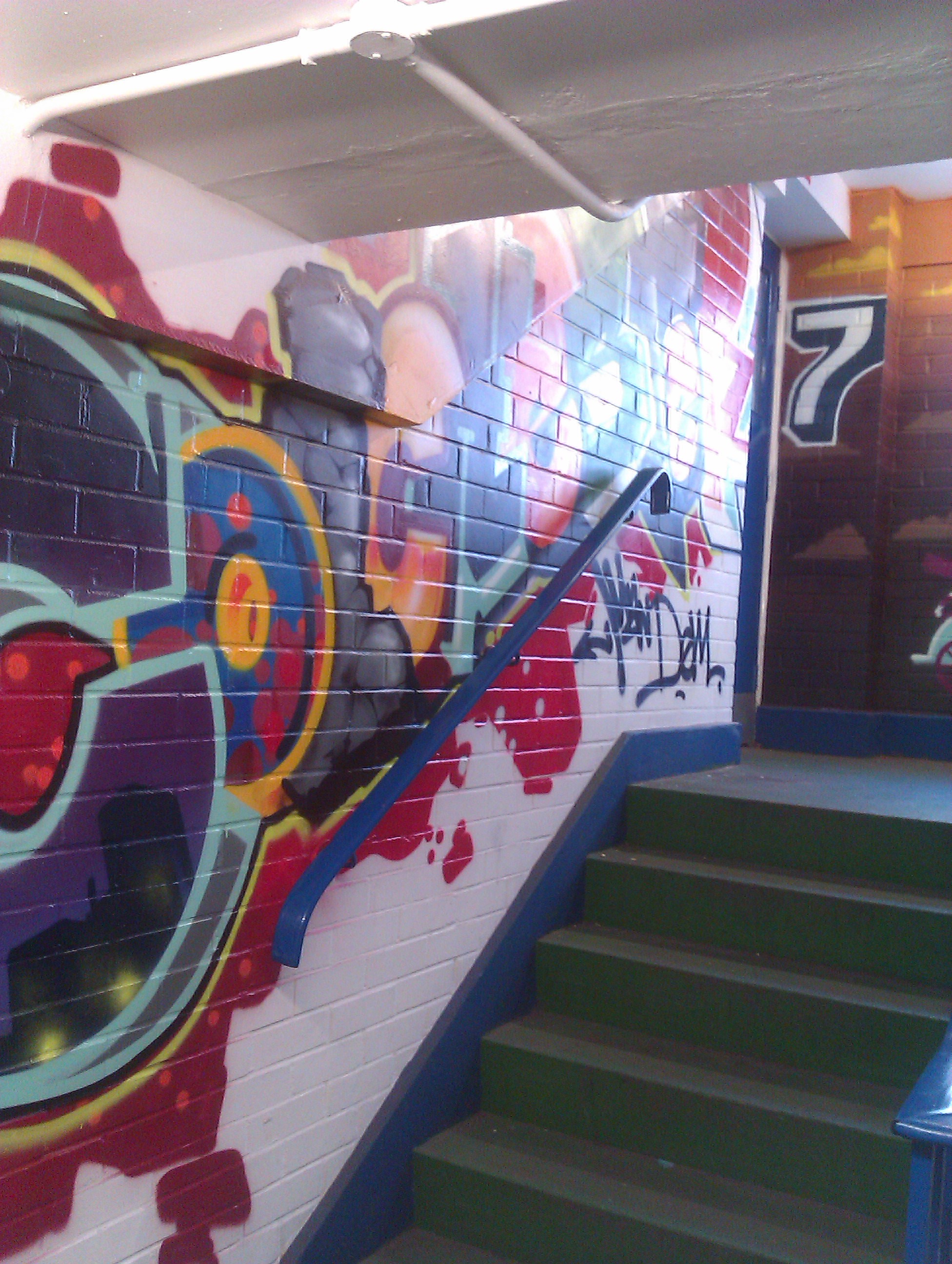The stairwell of the Williams & Griffin (W&G) carpark in Colchester town centre has been given a makeover. It was such a nice surprise to be greeted with graffiti art rather than plain white walls!