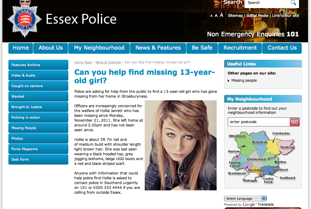 For more information please visit the Essex Police website – let’s get Hollie back home.