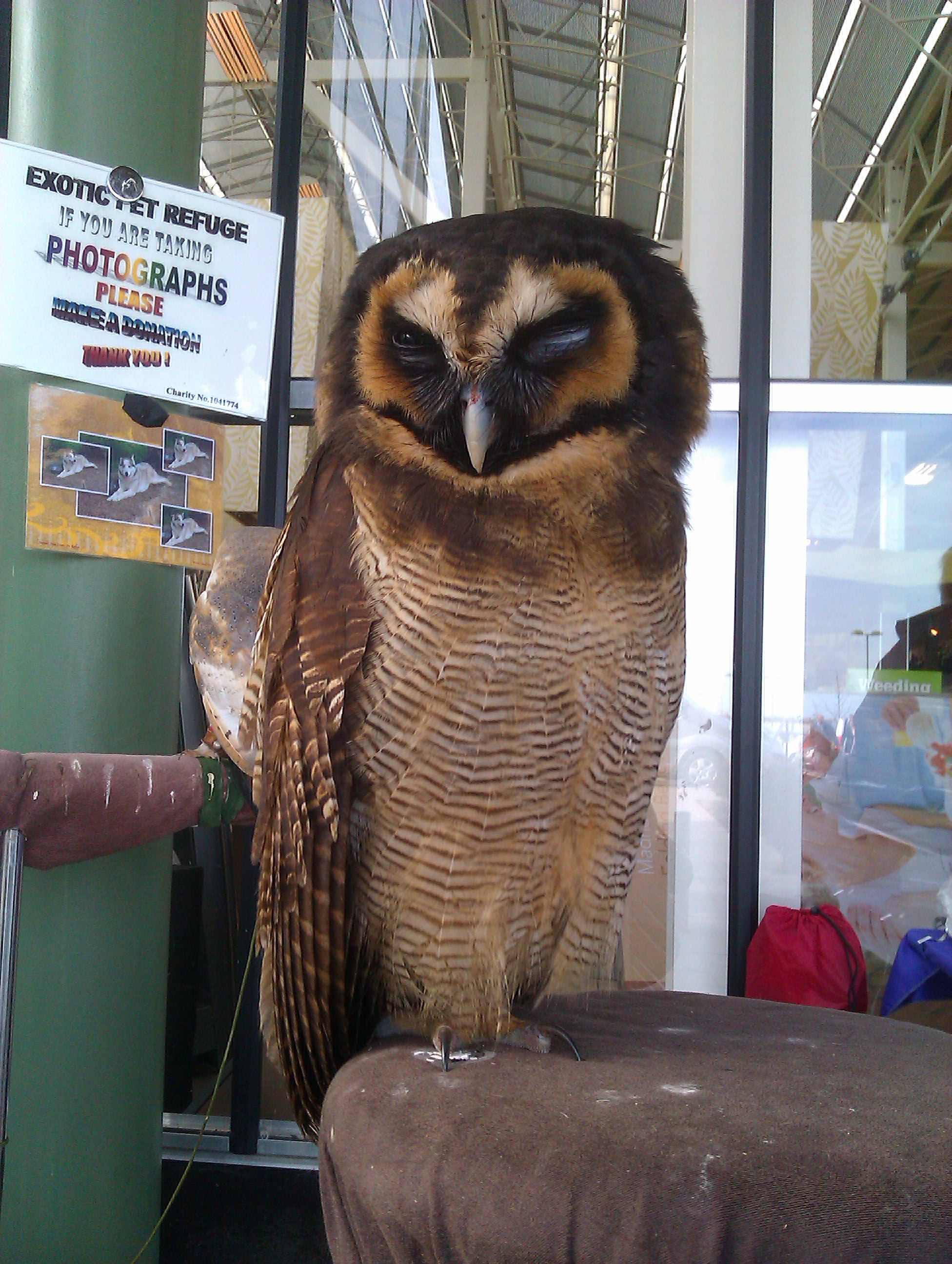 They were there to highlight the work of the Exotic Pet Refuge. The owls were stunningly beautiful and looked in excellent condition so I can only assume that the good folks at the Exotic Pet Refuge are doing an excellent job!