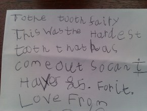 I was sorting through a box of stuff last week when I found a note from genius boy to the tooth fairy. Judging by the writing I would say he was probably about… Continue reading