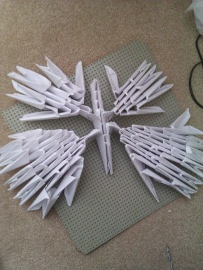 A close up pic of one of my mother’s day gifts, it’s an articulated origami butterfly patiently made by my 10 year old.